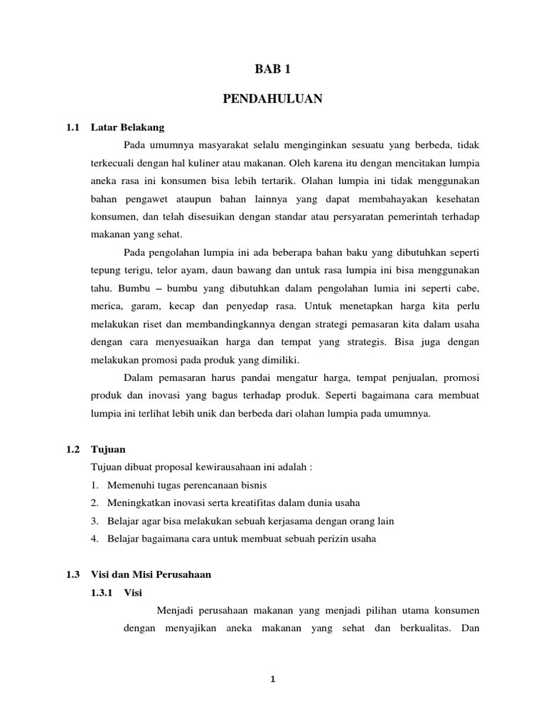 Proposal Usaha Makanan Lumpia : Rindiany, wildan, yesi, yulistia e.. Setiap orang pasti membutuhkan makanan. Kelompok 3 kewirausahaan ketua : Berbagai usaha makanan memang bermunculan sesuai dengan perkembangan kebutuhan masyarakat. Rindiany, wildan, yesi, yulistia e. Produk makanan lumpia krispi disusun oleh : Selain itu usaha makanan kami anggap tidak Usaha makanan yang kami rencanakan yaitu makanan atau tepatnya adalah lumpia. Dari pemikiran inilah kami mempunyai ide untuk membuka usaha makanan kecil yang sudah menjadi salah satu makanan yang tidak asing diingatan masyarakat, namun . Kami memilih lumpia semarang sebagai usaha bisnis, .